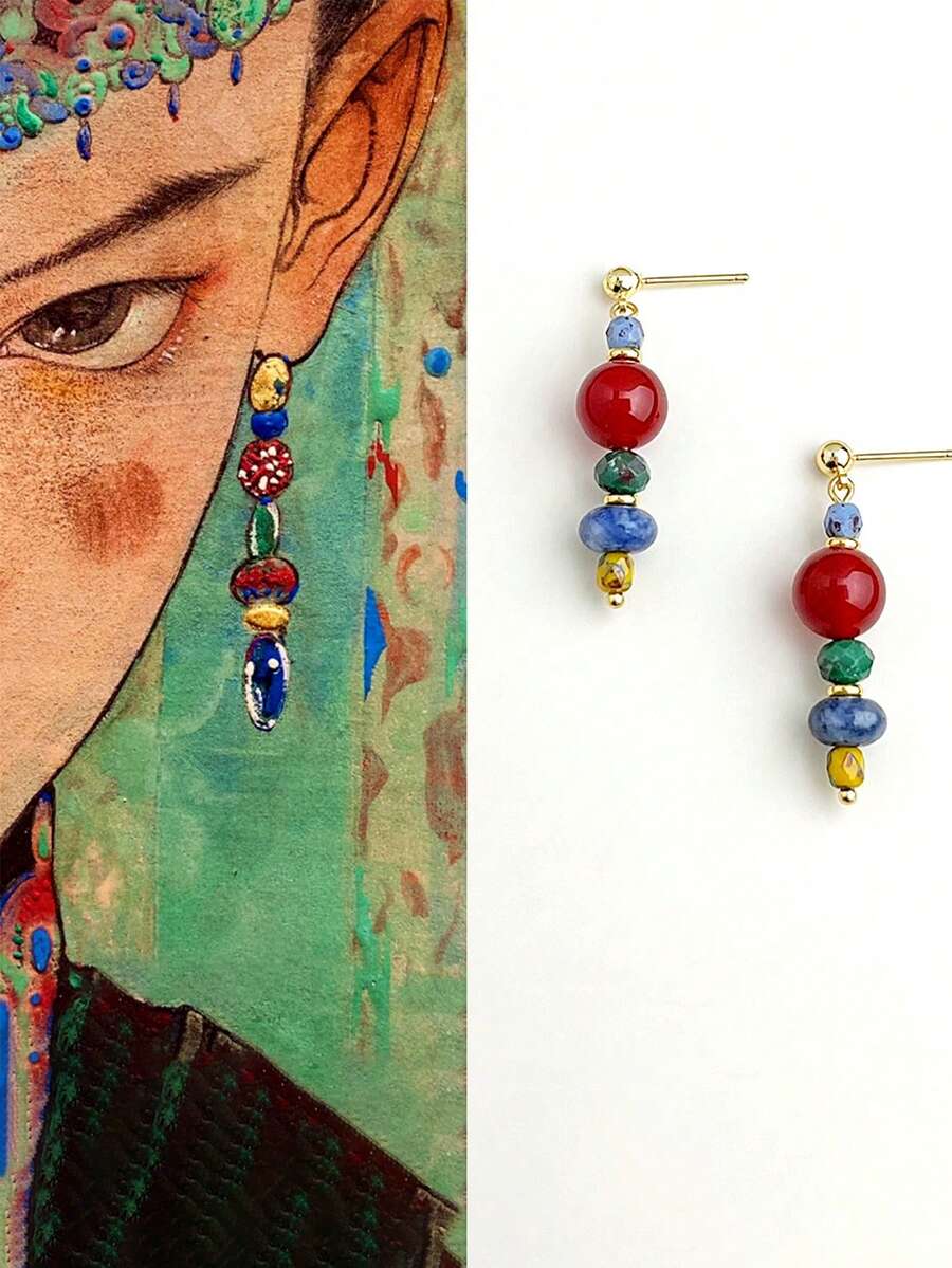 1 pereche de cercei în stil boem, cercei cu pandantiv din argint 925 original, lucrați manual, cercei cu ciucuri din piatră naturală și agat chinezesc, stil retro, potriviți pentru purtarea zilnică a femeilor, cadou surpriză pentru iubită