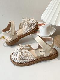 1 pereche sandale plate pentru copii mici/fetițe, maro cafea, mărime mare, cu plasă de culoare uni, fundă mare, curea elastică la spate, vârf rotund, talpă antiderapantă, sandale de plajă romane la modă și drăguțe, potrivite pentru fete de 3-15 ani, pentru zi cu zi, petreceri, călătorii, plajă vara
