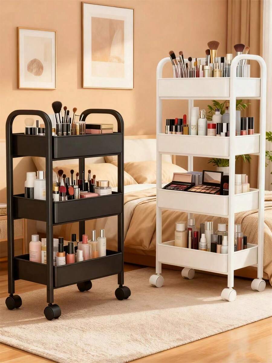 Cărucior mobil de depozitare cu 1/4 niveluri și roți, suport organizator mobil multifuncțional, rafturi detașabile pentru podea pentru haine, depozitare în baie, bucătărie, dormitor, cadou de Crăciun și Ziua Recunoștinței (stil aleatoriu)