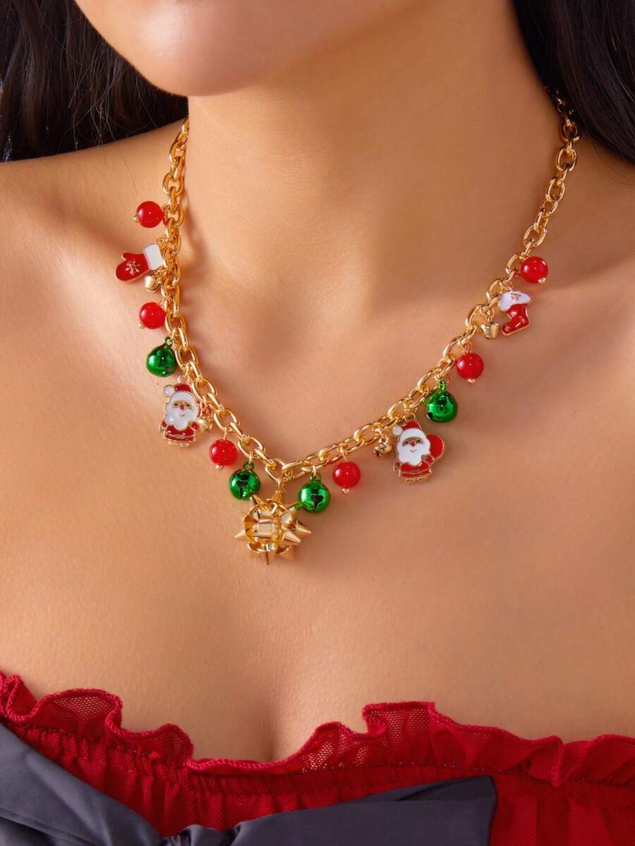1 buc Lanț Reglabil din Aliaj cu Mărgele din Lut Polimeric, Colier cu Pandantiv de Crăciun cu Mai Multe Straturi, Moș Crăciun, Brad de Crăciun, Om de Zăpadă - Colier la Modă și Versatil pentru Femei, de Crăciun, Sărbători, Petrecere, Evenimente, Bijuterii Choker - Cadou (Culoare Aleatoare)