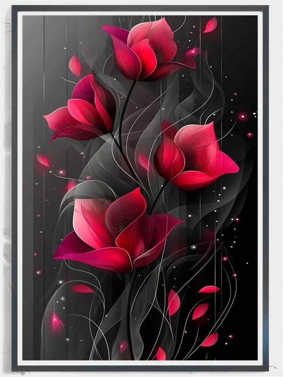 1 buc. Kit de pictură cu diamant 5D pentru adulți - Temă florală, set de broderie cu diamant rotund, complet, potrivit pentru decorarea peretelui acasă și biroul