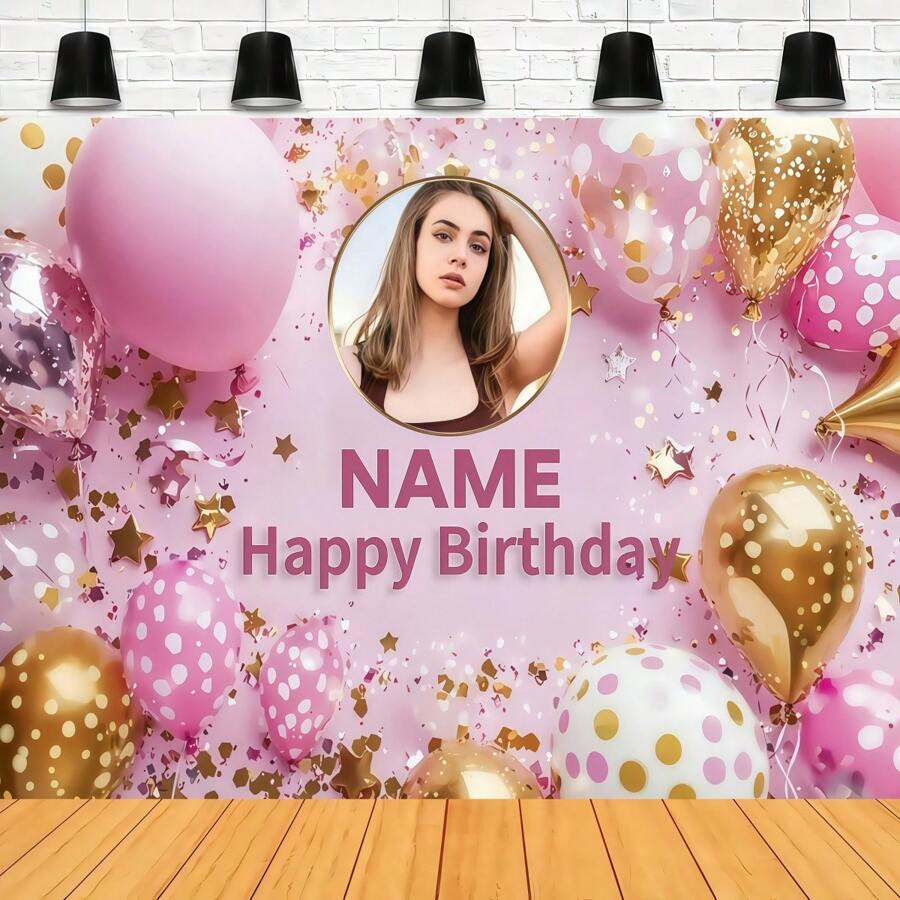 1 buc. Fundal personalizabil roz strălucitor pentru petrecere de ziua de naștere cu baloane cu buline - Banner personalizat pentru La mulți ani, potrivit pentru aniversări și sărbători, ideal pentru decorul cabinei foto, disponibile în mai multe dimensiuni