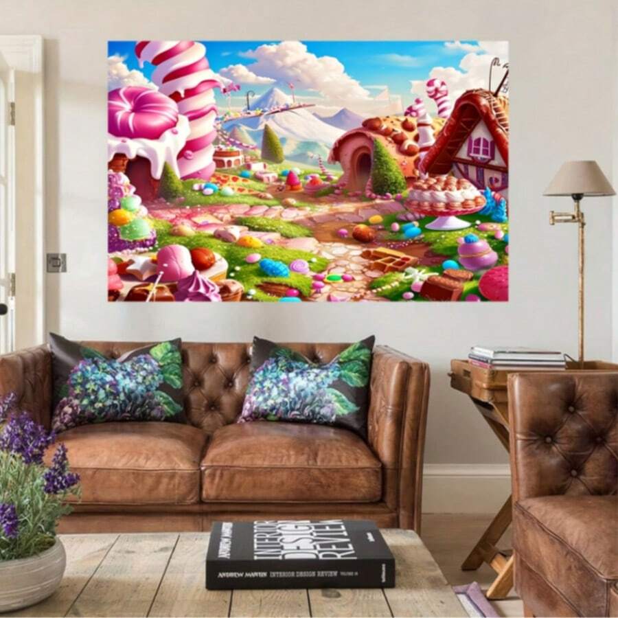 1 buc fundal peisaj de vis cu bomboane, înghețată, dulciuri, fundal fotografie cu acadele, casă cu tort, decor petrecere de ziua de naștere, recuzită pentru studio foto, decorare banner fundal