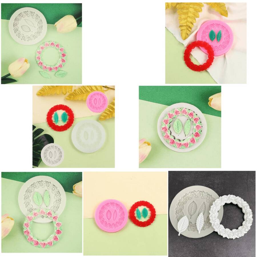 1 buc. matriță din silicon cu formă de coroană de trandafiri cu frunze pentru lumânări, ceară, săpun, decorare tort