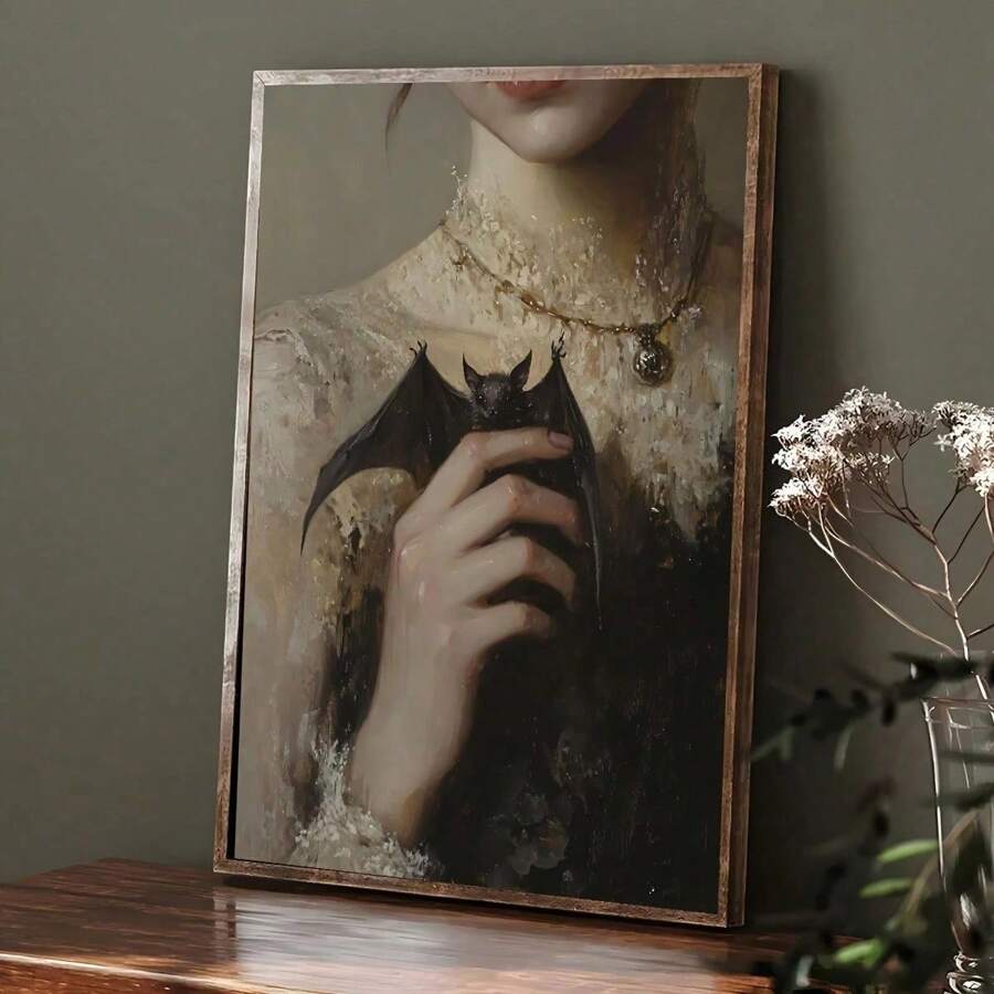 1 buc cadru opțional retro gotic întunecat liliac poster, pictură în ulei pentru fată cu liliac, artă murală pe pânză impermeabilă, artă murală cadou, living, dormitor, baie, birou, coridor, bucătărie decorare casă decorare Halloween decorare toamnă decorare cameră decorare.