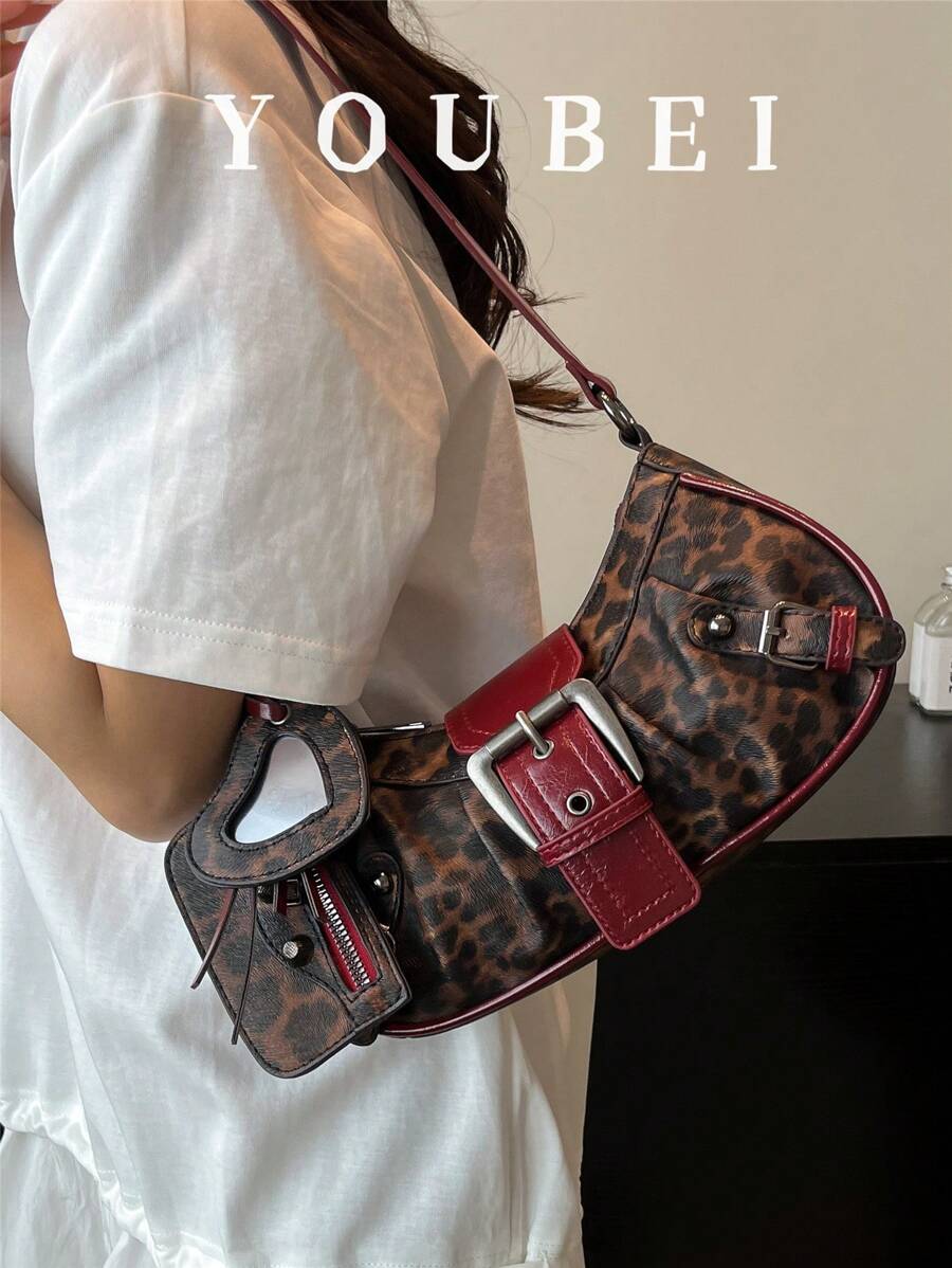 1 buc. Geantă de umăr pentru femei, cu decor retro punk cu nituri, curea reglabilă, capacitate mare, din piele sintetică moale, cu gradient de culoare, potrivită pentru naveta la serviciu, întâlniri, petrecere