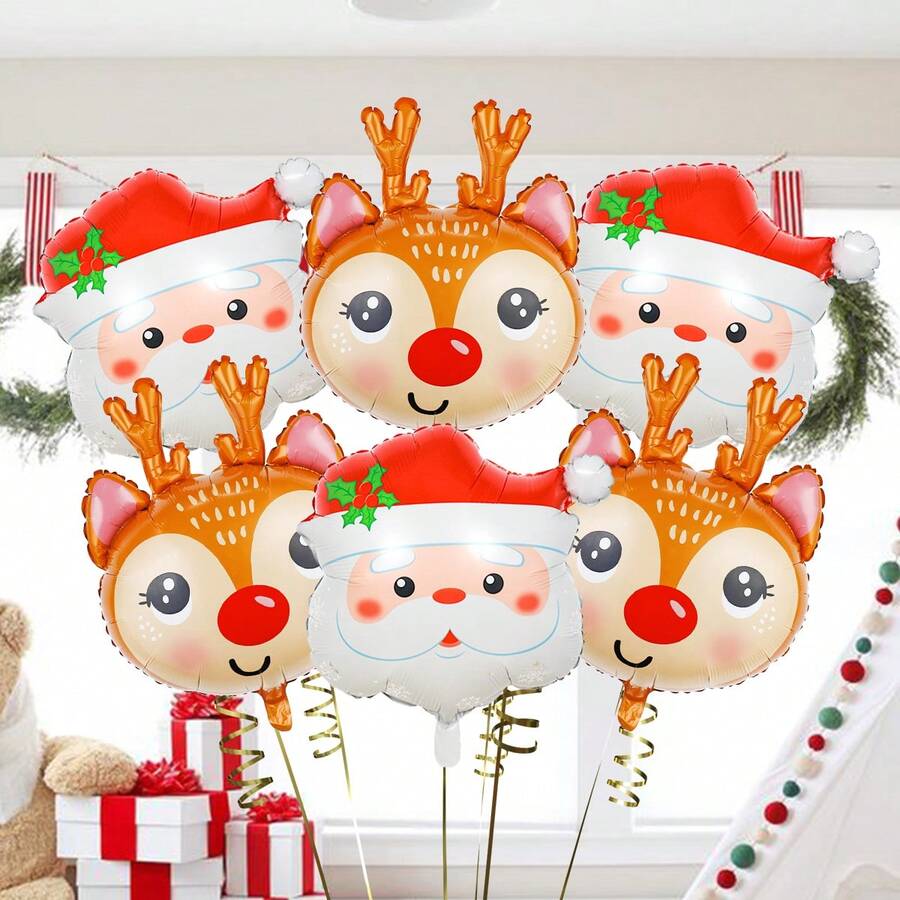 2/4 buc Baloane folie de Crăciun cu cap de ren și Moș Crăciun, Baloane cu pălărie de Moș Crăciun cu ren și fulg de zăpadă, Potrivite pentru decorarea Crăciunului, Ajunul Crăciunului, Anul Nou, Petrecere de ziua de naștere, Decorațiuni pentru reuniuni de familie, Recuzită foto