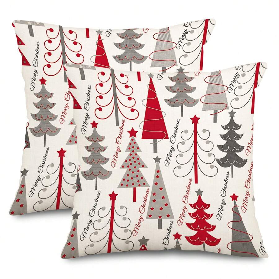 2 buc. față de pernă de Crăciun, față de pernă geometrică colorată roșie și gri cu model de brad de Crăciun, față de pernă decorativă de Crăciun, față de pernă decorativă de iarnă cu model rustic, potrivită pentru canapeaua extensibilă de acasă. (40,6 cm * 40,6 cm, 45,7 cm * 45,7 cm, 50,8 cm * 50,8 cm)
