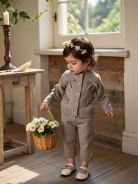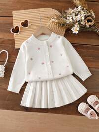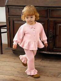 Souflis Souflis Set pulover drăguț și rezistent cu funde 3D și volane pentru bebeluși, cardigan tricotat verde închis, lejer și versatil, cu fustă scurtă, din două piese, ținută drăguță și elegantă cu mânecă lungă pentru fete, potrivită pentru purtare zilnică, atmosferă de festival, scenarii de ieșire, scenarii de călătorie, scenarii de vacanță, scenarii de acasă și ținute pentru întoarcerea la școală, o alegere vestimentară versatilă. SHEIN Vintaside Kids Set 2 pulovere pentru bebeluși fetițe: Top alb cu decolteu rotund și fundă + Pantaloni evazați, Seturi de haine dulci și la modă pentru bebeluși de iarnă, Set pentru bebeluși, Sezonul de toamnă-iarnă, Set pulovere pentru bebeluși fetițe verde și alb, ținută pentru bebeluși, Costum de toamnă și iarnă, Seturi calde pentru bebeluși, Seturi din două piese, Set pentru bebeluși, Sezonul de toamnă-iarnă, Tricotaje pentru bebeluși, Haine pentru bebeluși, Pulover tricotat de toamnă, Fete SHEIN Bebeluș/Fetiță, drăguț, cu accent de fundă, culoare solidă, moale, de înaltă calitate, detaliat, toamnă/iarnă, esențial, dulce, casual, versatil, stil coreean, adorabil, prințesă, roz, potrivit pentru vacanță, reuniuni în familie, parc de distracții, Crăciun, călătorii, joacă acasă, set pulover și pantaloni tricotați, vânzare fierbinte