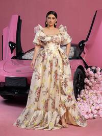 Serin Rochie maxi elegantă, romantică, maro, cu decolteu în V adânc, mânecă lungă, transparentă, cu nod răsucit, de lux, cu perle și strasuri, din dantelă franceză, cu crăpături înalte, tip sirenă, pentru mama miresei