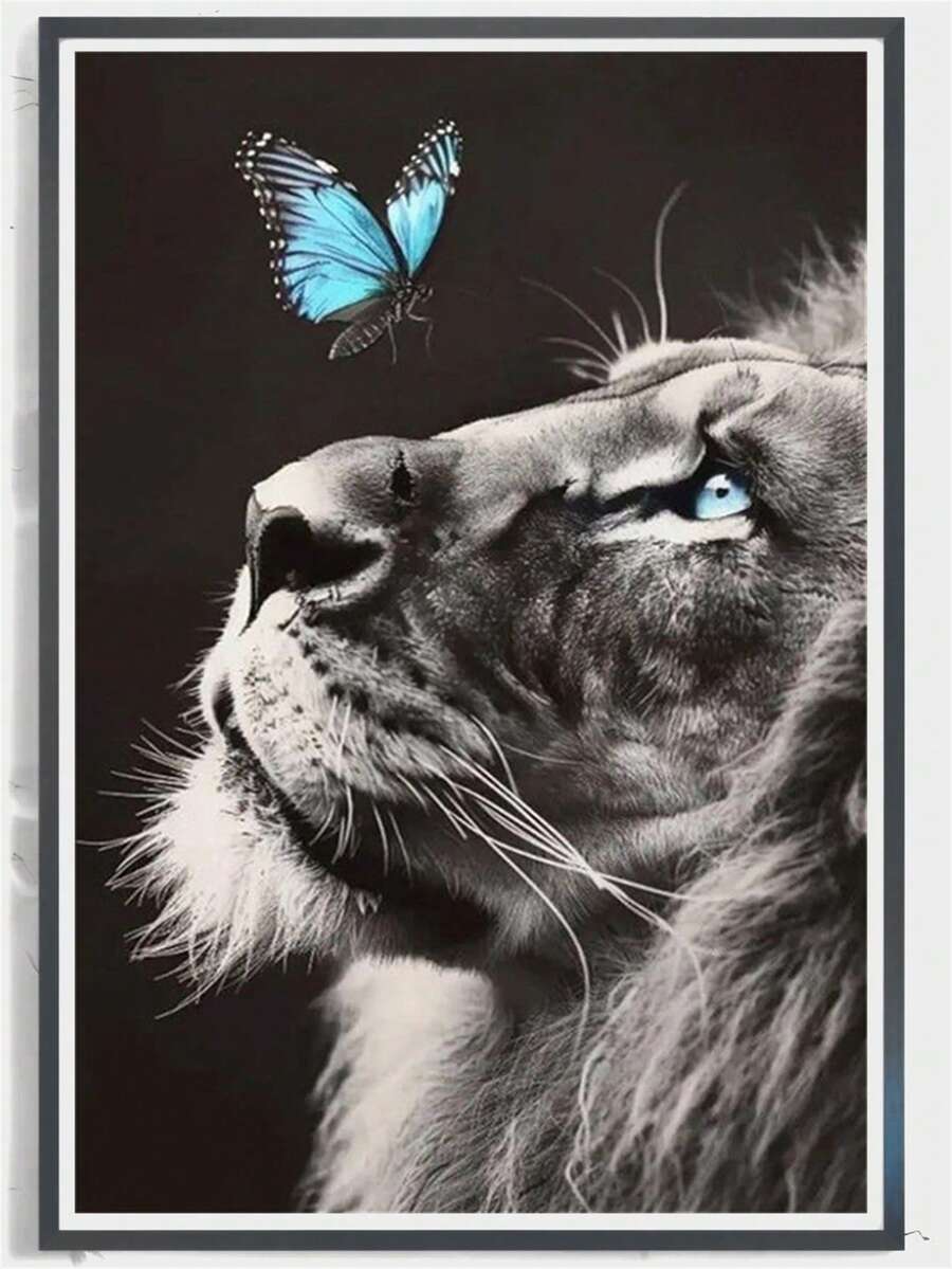 Kit de pictură cu diamant 5D - Artă cu leu cu tematică animală, artă cu diamant rotund DIY, potrivită pentru începători, cadou decor de perete