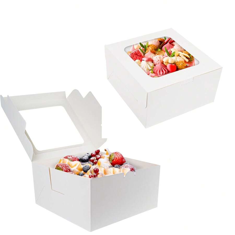 5 bucăți cutii albe pentru tort 10x10x5 inci, cutii de panificație cu fereastră transparentă pentru tort, plăcintă, desert, prăjitură, ziua de naștere, petrecere, nuntă