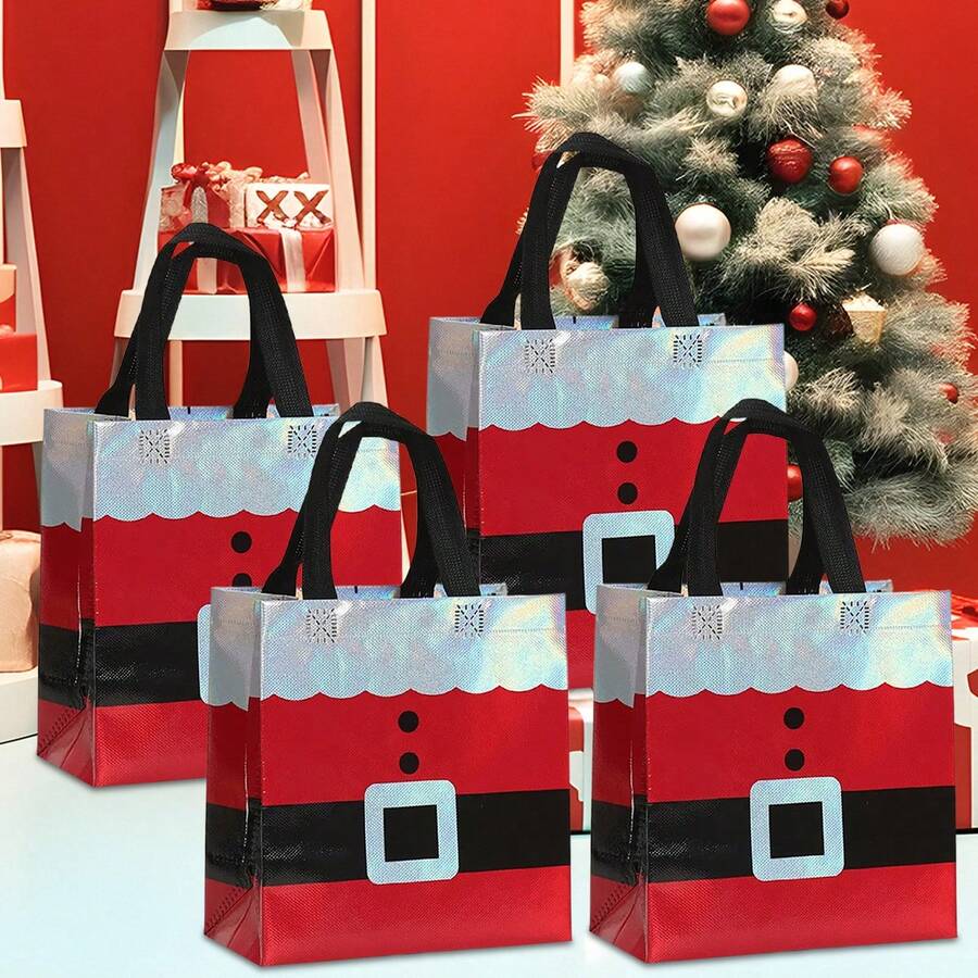 6/10/20 buc pungi cadou de Crăciun cu design Moș Crăciun, mărime medie, poliester reutilizabil, pungi pentru cadouri festive, decor de sărbători pentru casă și bucătărie, pungi cadou de Crăciun