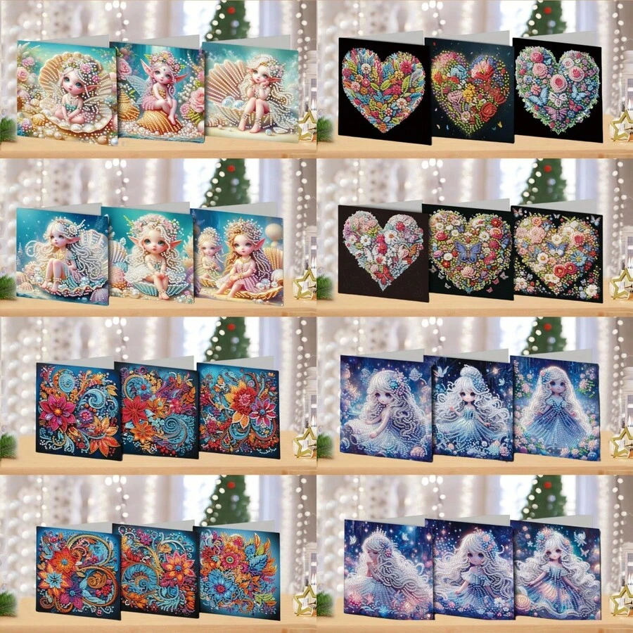 6 buc/set colorat floral, inimă, model drăguț de zână cu diamant pictură DIY mozaic asimetric cu diamant cristal card kit - exprimă dragoste nerostită și sentimente romantice pentru sărbători