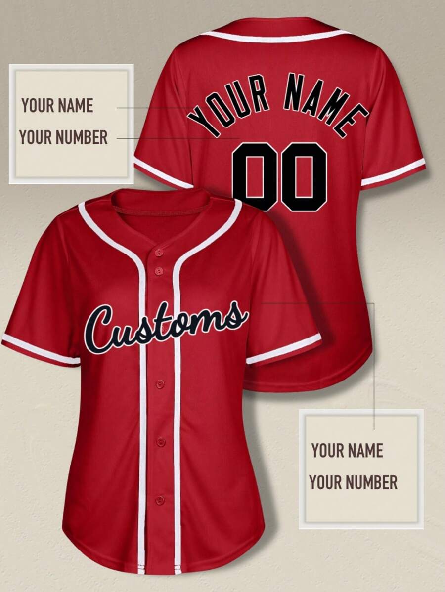 Tricou de baseball personalizabil pentru femei - Bluză roșie cu decolteu în V, imprimată, cu nume și număr personalizate, lavabilă la mașină, mărimi S-2XL, pentru activități în aer liber și sport, îmbrăcăminte sport durabilă