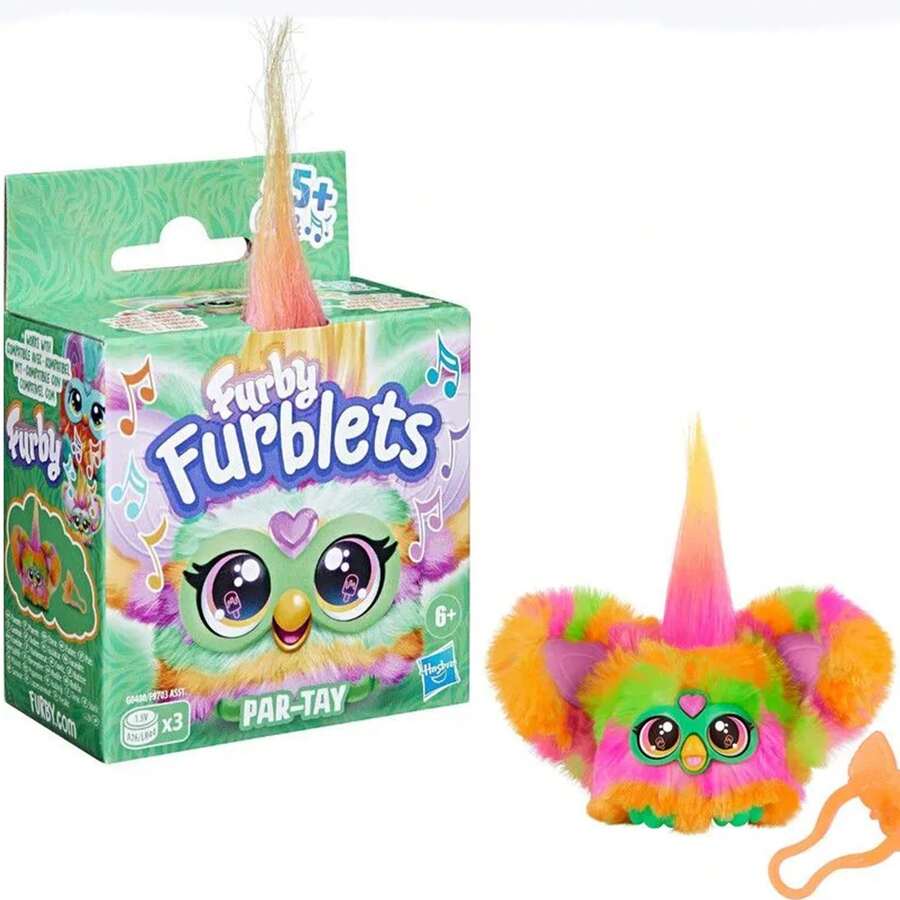 Furby Furblets Par-Tay Mini Friend, peste 45 de sunete, muzică disco, vorbește doar Furbish, jucării electronice de pluș pentru fete și băieți, animale de companie interactive, multicolor, 6+