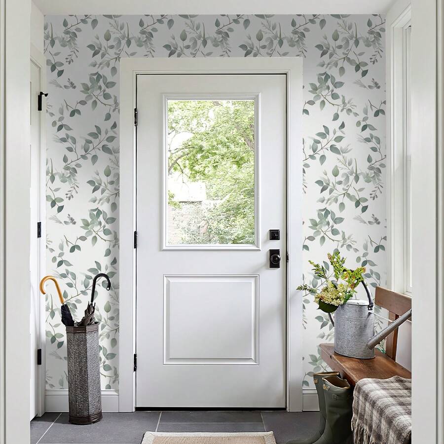 Tapet verde cu frunze de eucalipt - autocolant de perete autoadeziv din vinil, detașabil și impermeabil pentru decorul casei și renovarea pereților camerei de zi, dormitorului, bucătăriei, decor de perete estetic de toamnă