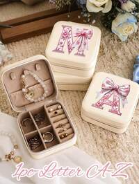 Cutie de bijuterii mini portabilă, cutie de depozitare a bijuteriilor bej cu model de litere tridimensionale cu fundă roz, cutie cadou pentru ambalarea bijuteriilor, cutie pentru inel de colier, cutie mică de depozitare a bijuteriilor cu capacitate mare, cutie mică portabilă de călătorie, potrivită pentru fete, iubiți, surori, cadouri rafinate, potrivită pentru călătorii de vacanță, înapoi la școală, călătorii de afaceri, naveta1 cutie creativă de lux pentru brățări, cutie de bijuterii cu coroană pentru pandantiv, brățară, inel, cutie cadou pentru bijuterii cu căptușeală din catifea pentru nuntă, zi de zi, ziua de naștere, Ziua Mamei pentru femei, organizator de depozitare, articole esențiale de călătorie, depozitare pentru dormitor, decor de toamnă CASEGRACE 1 cutie de depozitare pentru bijuterii de mare capacitate, cutie organizatoare pentru bijuterii din piele PU, cutie cu suport cu 5 sertare, cadou pentru femei și fete, coliere, cercei, inel, suport pentru ceasuri, cadouri de Ziua Îndrăgostiților, soare, călătorii, cool, înapoi la școală, decor pentru cameră 1 cutie de depozitare a bijuteriilor din catifea transparentă cu 3 straturi, organizează inele, coliere, brățări, cercei și pandantive, suport elegant de afișare cu buton de cristal, cutie de bijuterii de lux cu 3 niveluri - Depozitare spațioasă pentru cercei, coliere și inele - Organizator de birou de înaltă calitate, elegant și compartimentat, potrivit ca și cadou de Ziua Femeii, Crăciun, Halloween, cadou pentru doamne, de asemenea, pentru sărbători, plajă, baie, dormitor, capacitate mare