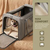 1 geantă de transport pliabilă portabilă pentru animale de companie, pentru câini și pisici de talie mică, de până la 9 kg, aprobată de companiile aeriene, cu geantă de călătorie moale pentru câini și pisici, cu panouri din plasă respirabilă și deschideri cu fermoar, geantă ușoară și durabilă pentru animale de companie, cu curea de umăr și mâner superior, ideală pentru avion, mașină, navetă, picnic în aer liber, camping, vizite la veterinar, articole esențiale pentru călătorii cu animale de companie pentru femei și bărbați