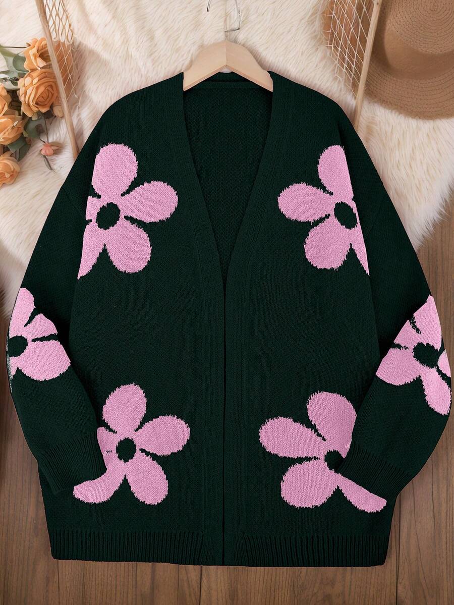 Cardigan tricotat cu model floral jacquard pentru femei, mărime mare, pulover versatil cu mânecă lungă, cadou de Ziua Îndrăgostiților, purtare zilnică