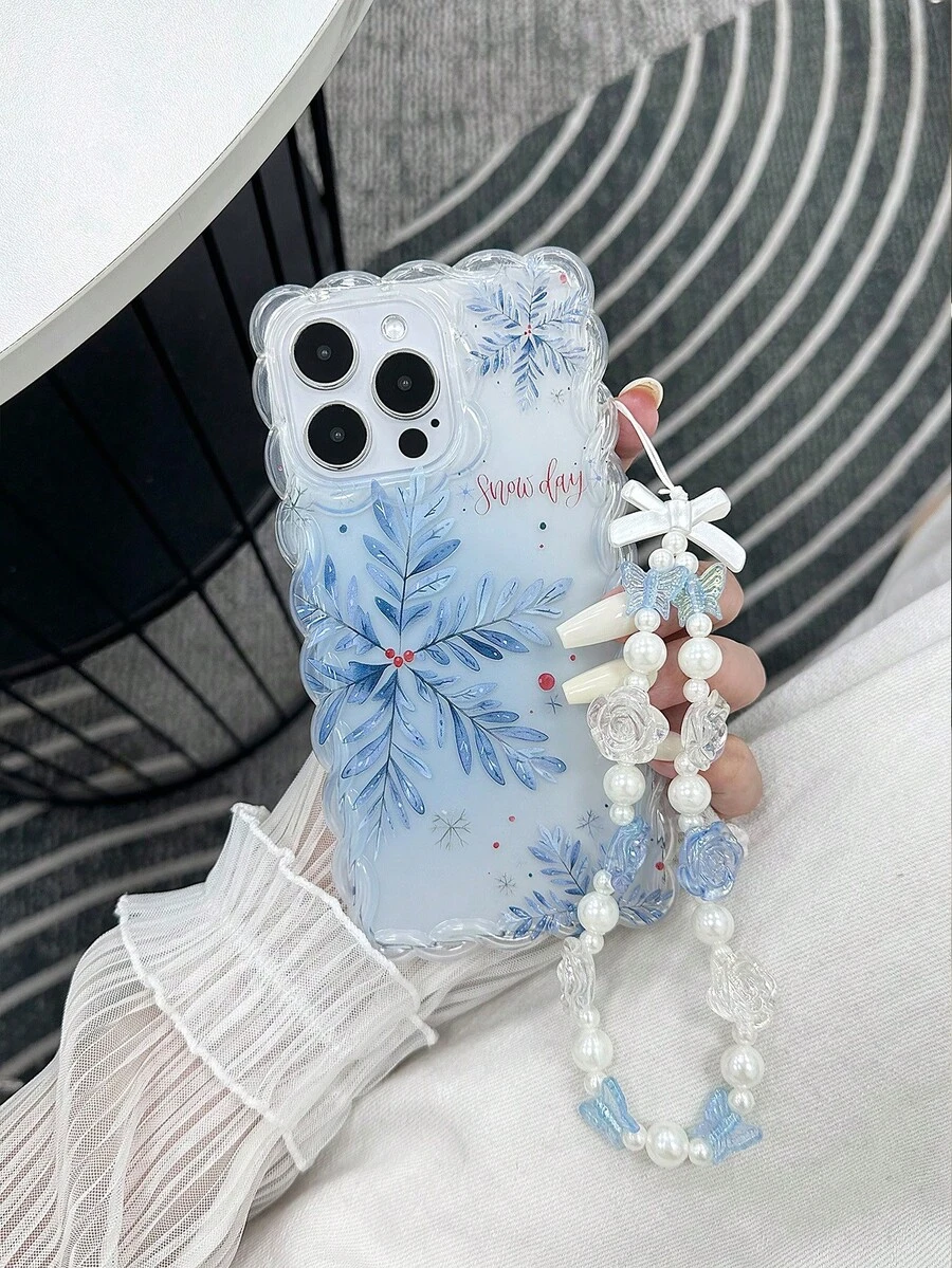 Carcasă de telefon anti-cădere din TPU, minimalistă, pictată cu model fulg de zăpadă, cu margini ondulate, împletite și accesoriu pentru brățară cu mărgele lucrate manual, compatibilă cu iPhone 17Pro/17Air/17/17ProMax 16/11/16Pro/16Plus/16ProMax/16E/15ProMax/13/14/12/XS/XR/7G/8PXR/7/8, pictată pentru iPhone 15ProMax, 13, 14, carcasă moale, P12, anti-cădere X, carcasă moale anti-cădere din TPU pictată 12/14