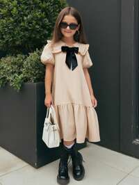 MODELY KidsBuline, Vară, Boem, Cearșaf, Vacanță, Rochie moale, Dantelă, Bumbac, Rochie elegantă și dulce pentru fete, pentru primăvară/vară, Imprimeu fluturi, Tiv plisat, Patchwork, cu fundă 3D, Decolteu rotund, Mânecă felinar, Stil grațios și feminin, Potrivită pentru vacanță, ieșiri casual, petreceri de sărbători
