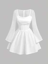 Firerie KidsFirerie Kids Firerie Kids Rochie de seară pentru fete preadolescente, cu mâneci evazate, cu imprimeu floral din plasă și volane, de culoare crem, potrivită pentru evenimente casual, vacanță, petrecere, timp liber, cu imprimeu floral, rochie cu volane, imprimeu floral hibiscus, frangipani