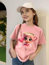 CozyroamerTricouri de vară pentru fete preadolescente, cu imprimeu de desene animate și guler rotund, bluze moi, mâneci scurte pentru adolescente, pentru școală, cumpărături, streetwear și vacanță. Potrivit pentru purtare zilnică, poate fi oferit cadou familiei, prietenilor, pulover casual confortabil cu mâneci de vară, lavabil la mașină, esențial zilnic, stil stradal.