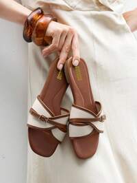 Sandale de damă noi, vârf plat și pătrat, accent cu fundă proaspătă, accesorii aurii de înaltă calitate, stil slip-on, ușoare și confortabile, se pot combina și se potrivesc, potrivite pentru casă, activități în aer liber de primăvară/vară, vacanță casual la țară, papuci de plajă la modă stradală. Sandale plate în formă de H pentru vara 2025, la modă, simple, în formă de H, pentru plajă, casual, pentru femei, culoare solidă, casual, elegante, din piele PU, pentru plajă, pentru vacanță, la birou, pentru casă, pentru petreceri în aer liber, vară NEW