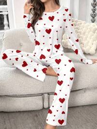 Loomlin Pijamale confortabile pentru femei, cu imprimeu de inimă, cu mânecă scurtă, din bumbac, pentru casă, cu imprimeu de inimă, pentru casă, lenjerie de pat, lenjerie de pat, pijamale moi, pijamale pentru femei, pijamale drăguțe, lenjerie de pat